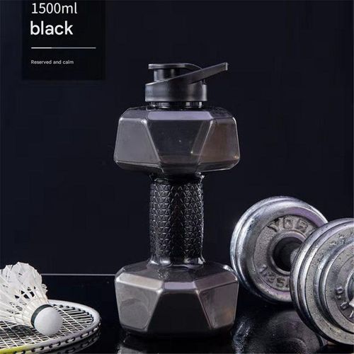 Black Dumbbell Water Bottle - 2-in-1 Fitness & Hydration Tool | 1500ml Large Capacity, Ideal for Indoor & Outdoor Workouts