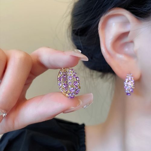 (Pair) Élan Amethyst Earrings: Crystal Climbing Earrings - Artisan Swirl Design for Celestial Elegance (Demiluxe Violet)