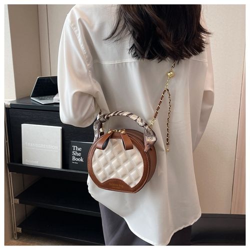 New Brown and Cream Diamond Check Shoulder Bag - A stylish and versatile small round tote | A timeless and elegant bag on trend