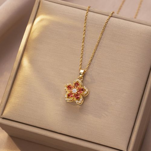 Orange & White Bauhinia Rotatable Necklace for Women - Dainty Zircon Flower Necklace with Spinning Design | Unique Rotatable Zircon Clavicle Chain, Fashionable Jewelry