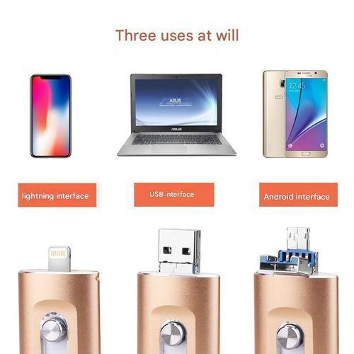(delivery in 3 days)Pocket-Sized Charging Flash Drive - Rose Gold 64GB w| type-C & Lightning for iPhone|Android | Data Transfer + Power Boost