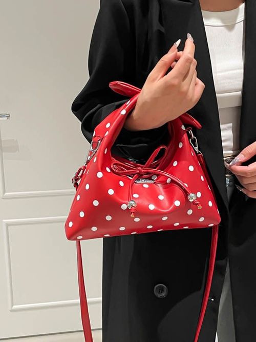 Red Polka Dot Handbag - Stylish Vintage-Inspired Mini Tote | Unique Designer Crossbody Bag for Daily Commute & Versatile Outfits