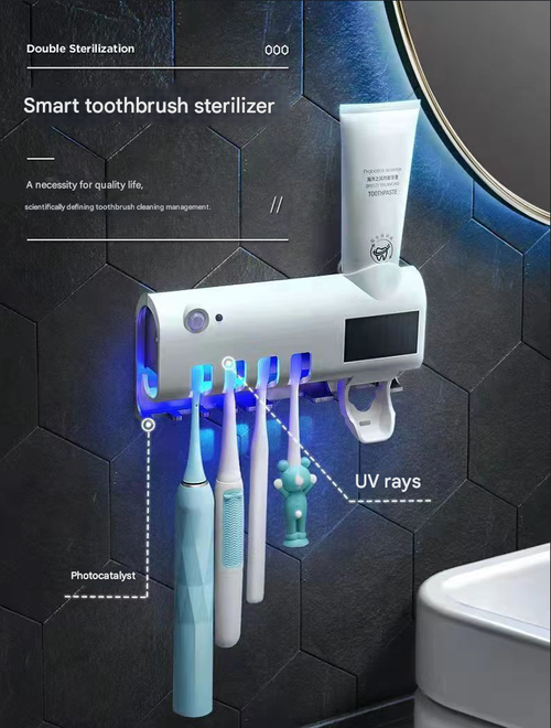 White Automatic Sensor Smart Toothbrush Sterilizer - UV Disinfection Wall-Mounted Toothbrush Holder | Multi-Functional Bathroom Storage Rack, Drill-Free Installation 1109 sales