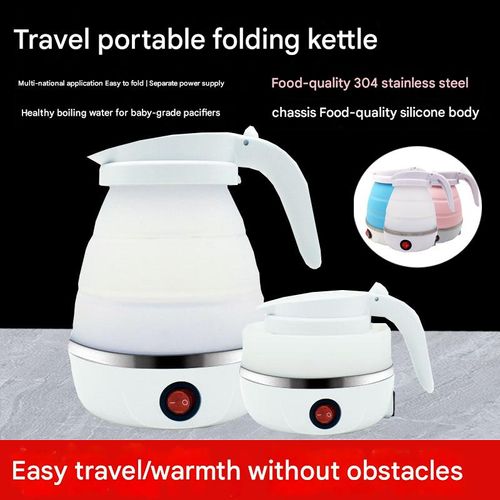 White Portable Foldable Electric Kettle - Multifunctional Travel Water Heater with Automatic and Keep-Warm Functions | Silicone foldable design for compact storage, perfect for travel