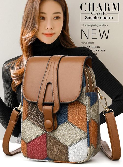 Women's Crossbody Phone Bag - Creative Stylish Luxury Mini Pouch | Multi-Compartment Zip Shoulder Bag, Versatile Elegant Vertical Design in Soft Leather, Random Irregular Blue & Brown Tones1252 sales